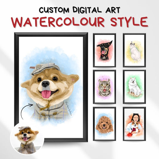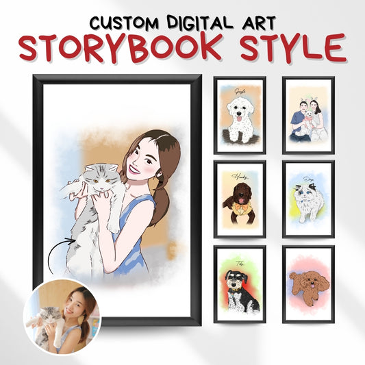 Digital Art (Storybook Style) Pet & Human Portraits (6-10 Figures)